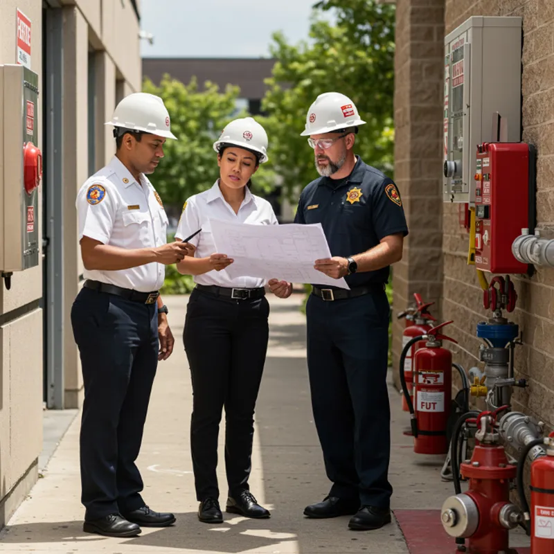 Isso engloba desde extintores de incêndio e hidrantes até SPrinklers e alarmes de detecção de fumaça.